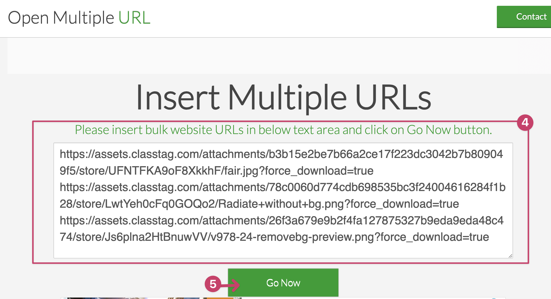 (4) Paste the first five URLs from the spreadsheet in the box