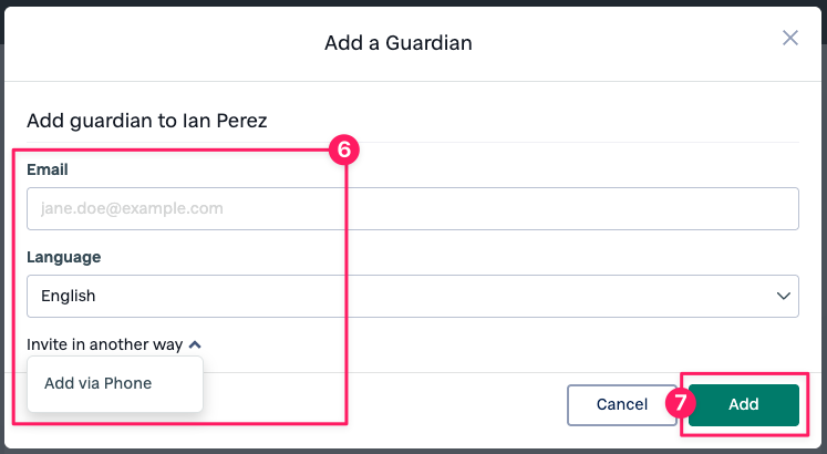 Click the 'add people' icon to the right for "Guardians"