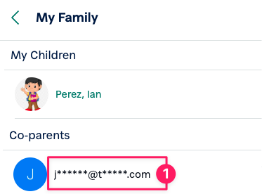 On the "My Family" page, scroll down to the 'Co-parents' section and click the co-parent's name or the contact information you want to remove.