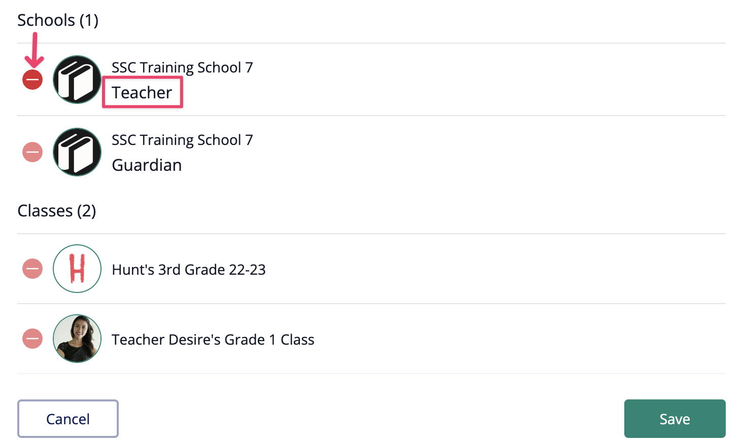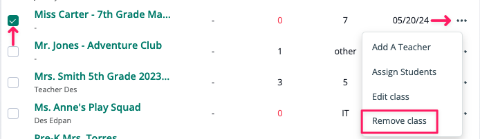 4. Look for the classroom you want to disconnect from your school