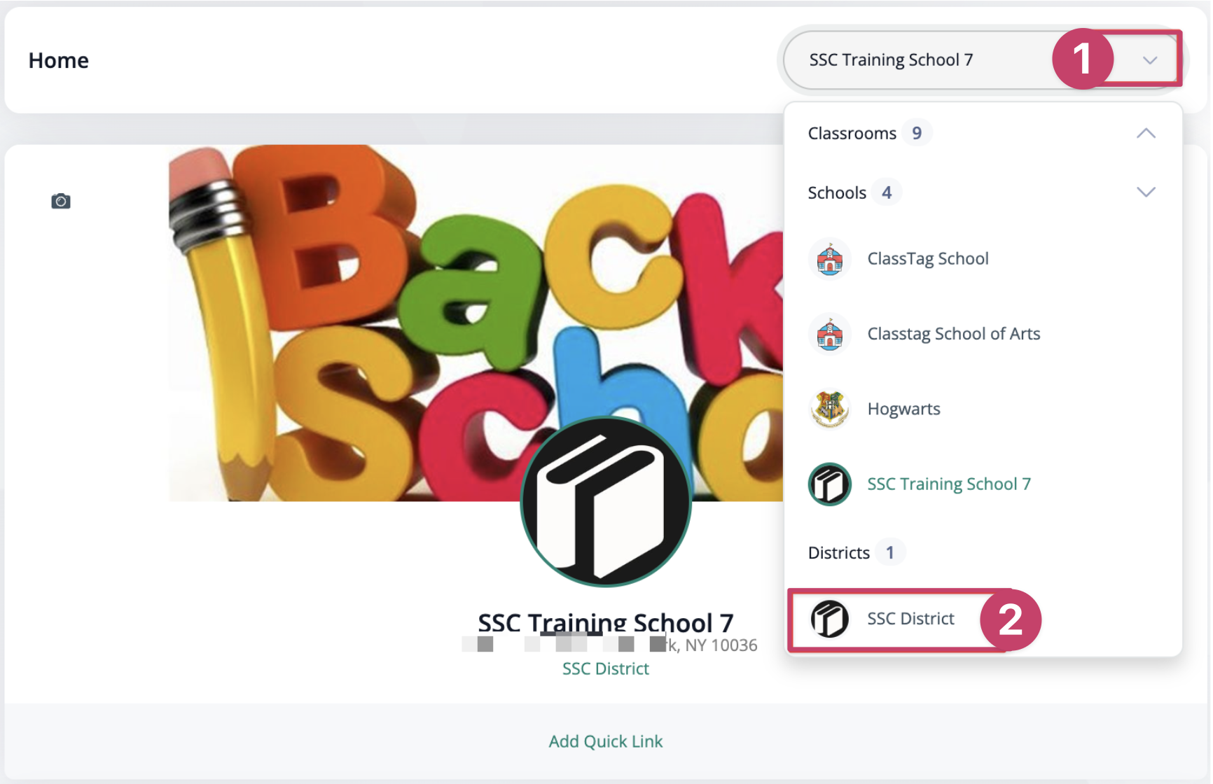 Access to School Dashboard for All Connected District Schools |