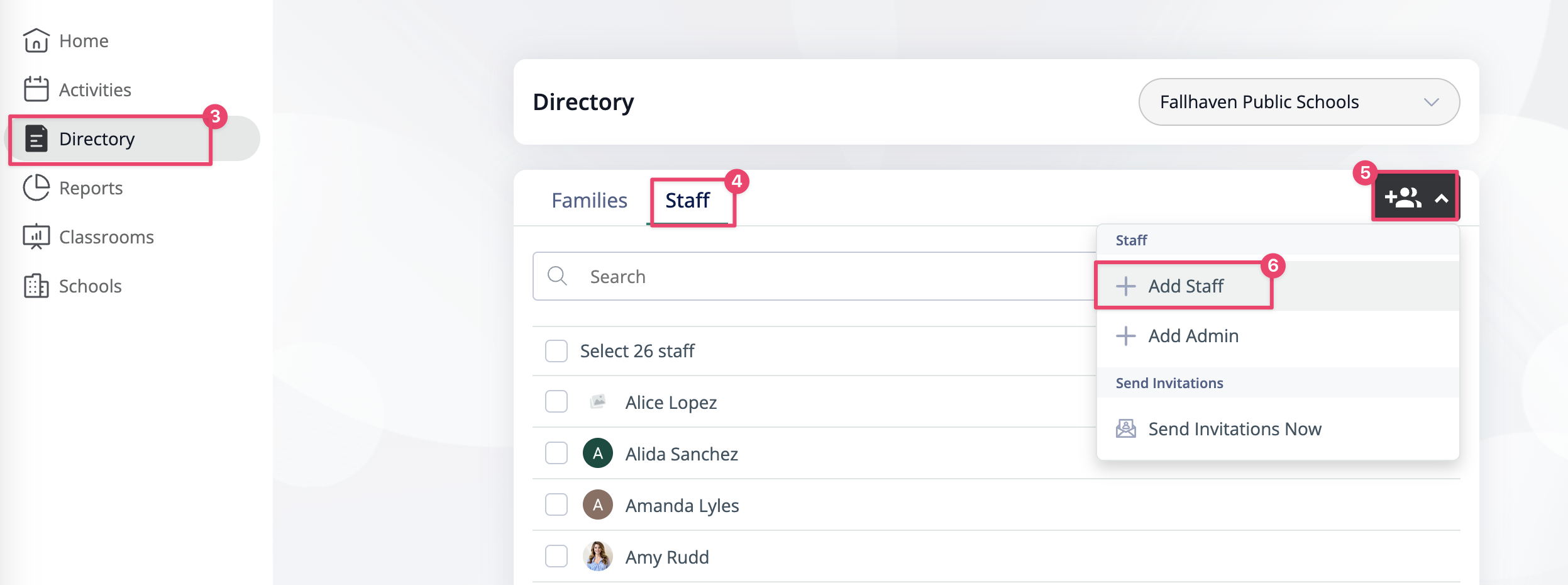 6. Click + Add Staff.