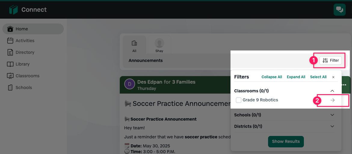 2. Select the correct classroom